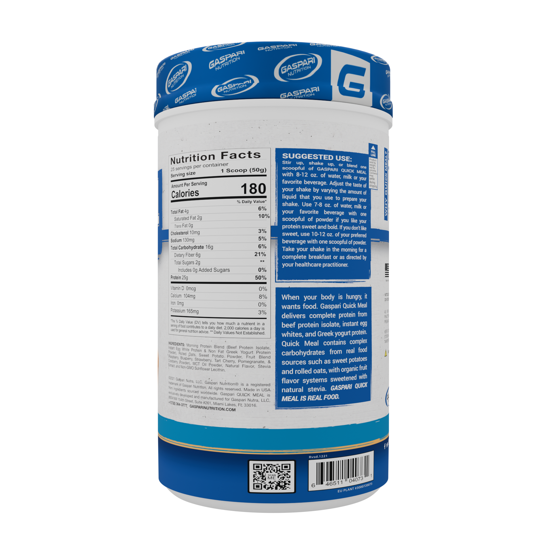 - When: Take Gaspari Quick Meal Real Food Blend anytime you need a nutrient-rich meal replacement or high-protein shake to support energy, recovery, and muscle growth.