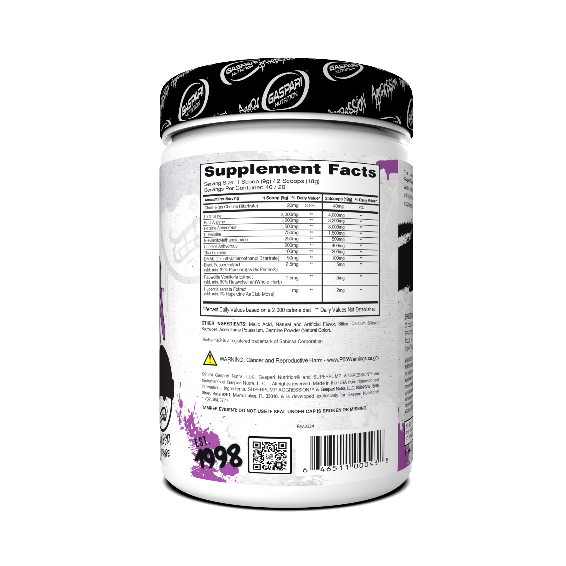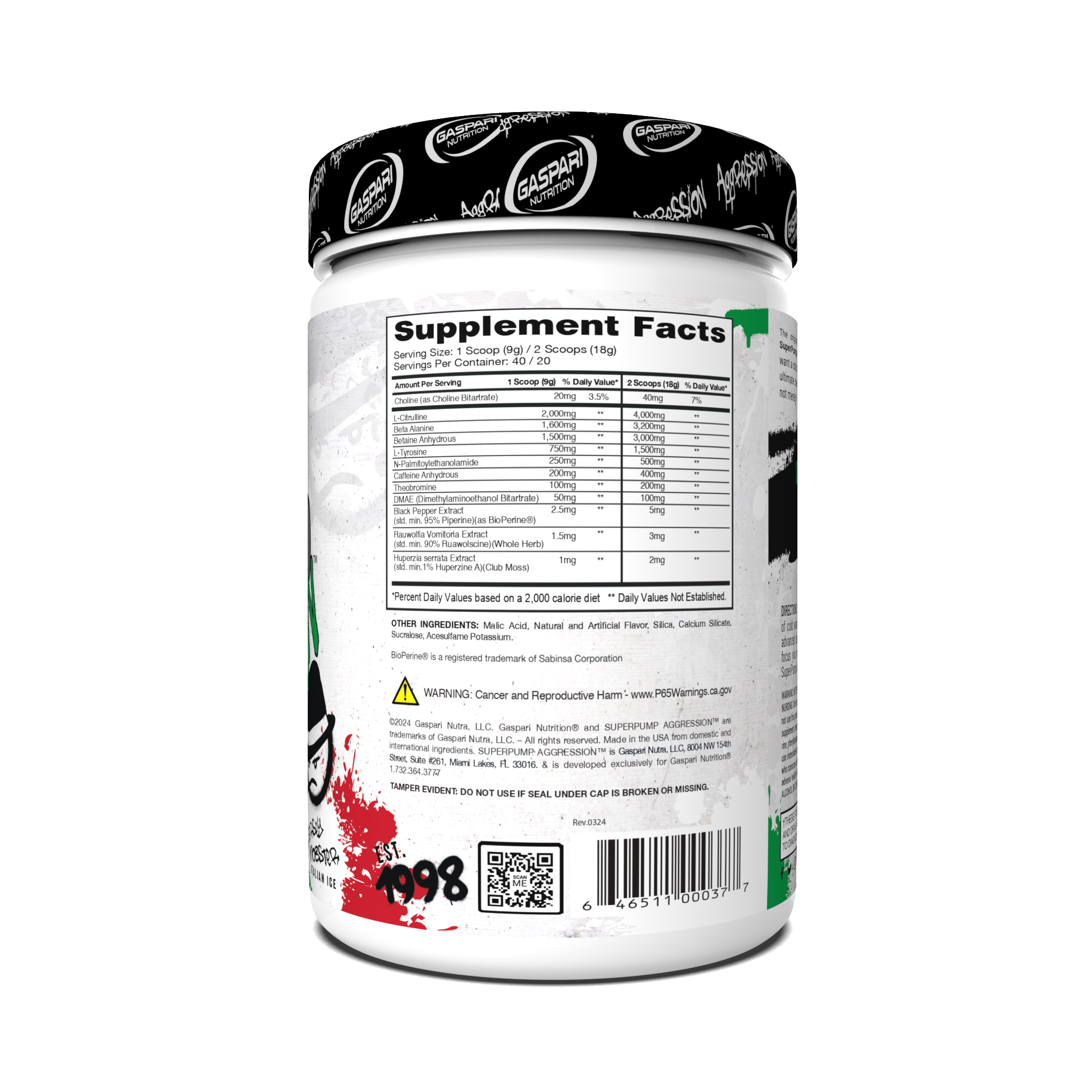 Gaspari SuperPump Aggression Next-Gen Pre-Workout is an advanced performance formula designed to deliver explosive energy, intense focus, and enhanced endurance. With L-Citrulline, Beta-Alanine, and Caffeine Anhydrous, this powerful blend boosts nitric oxide production, increases blood flow, and maximizes workout intensity.