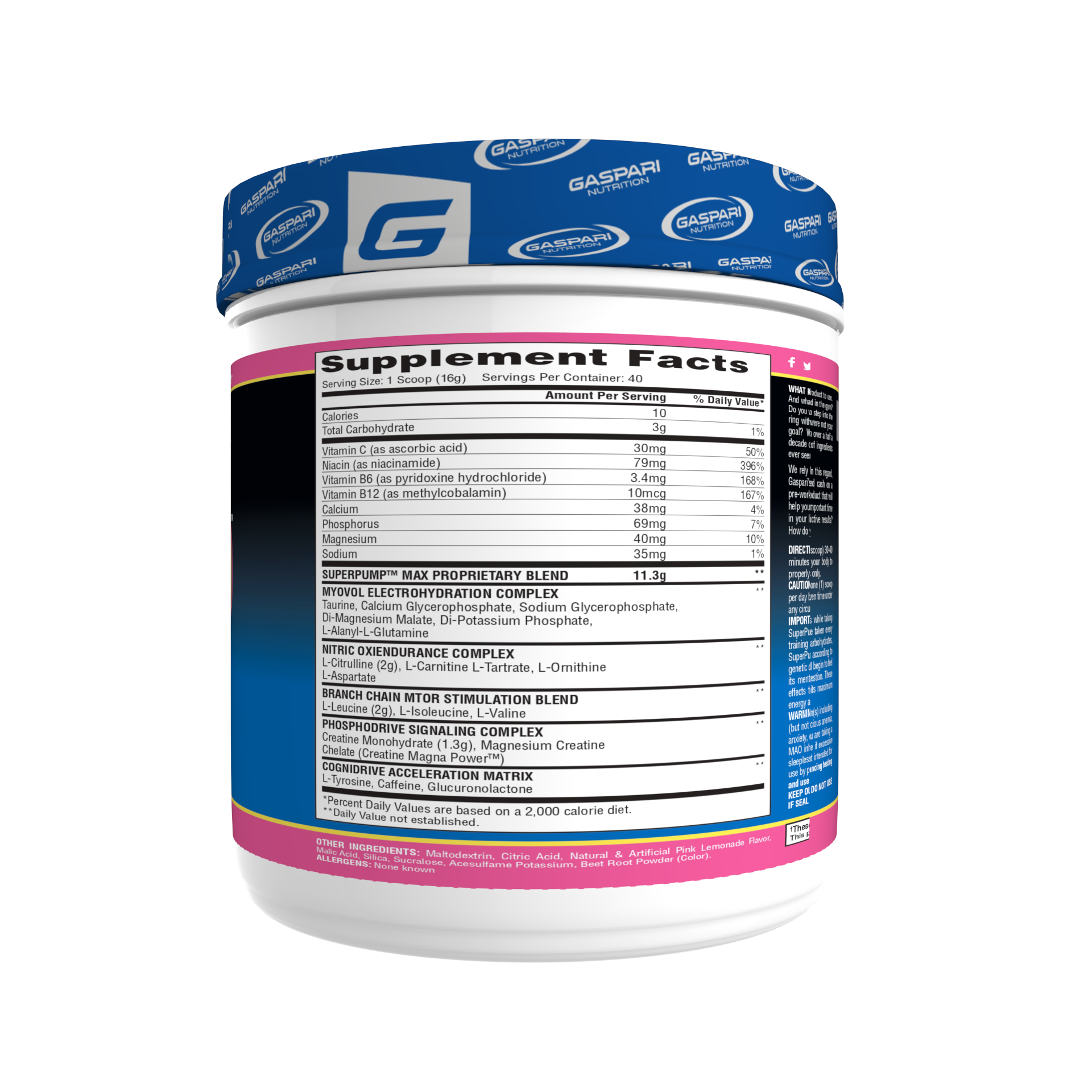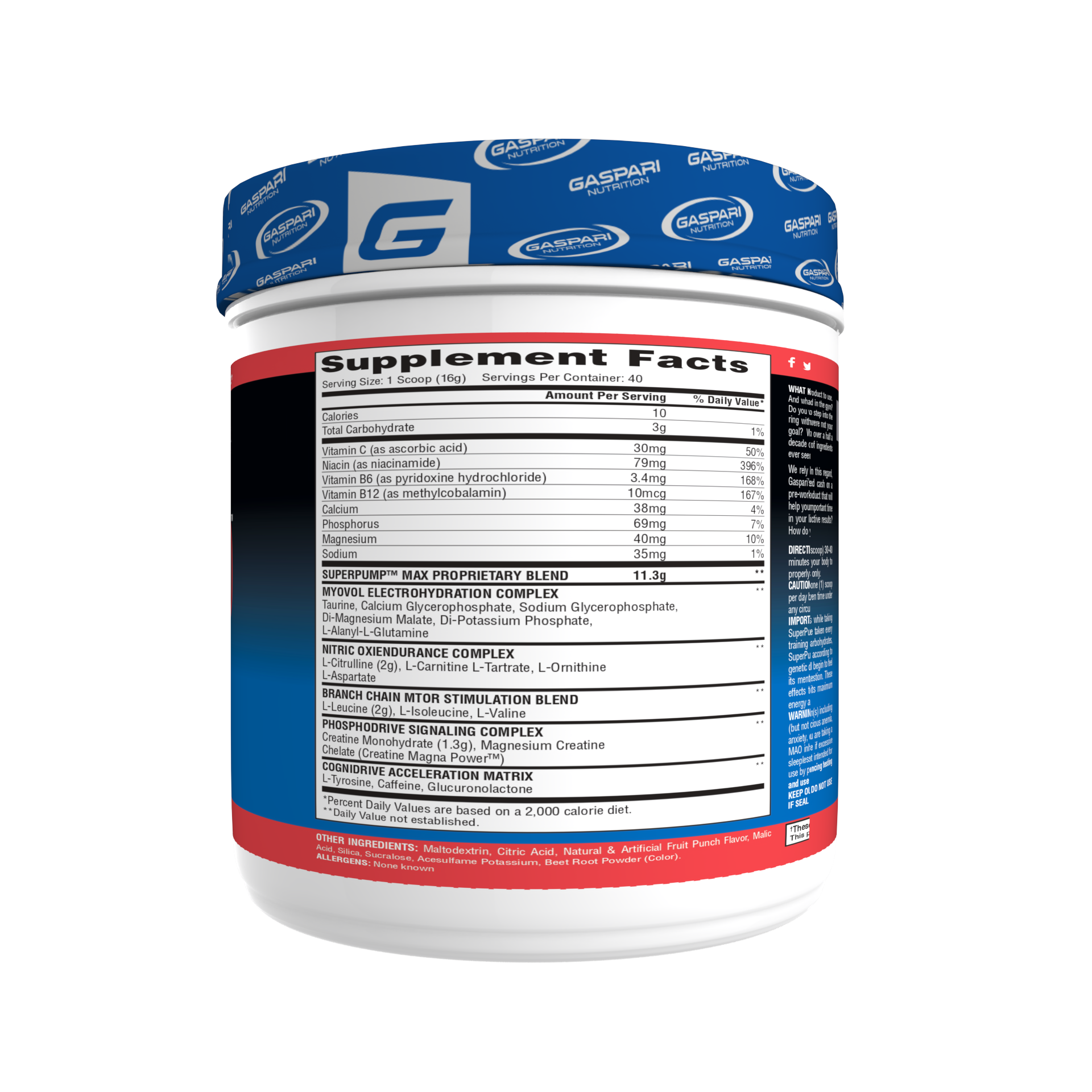 - When: Take Gaspari Super Pump Max 20-30 minutes before training to maximize pump, endurance, and focus.